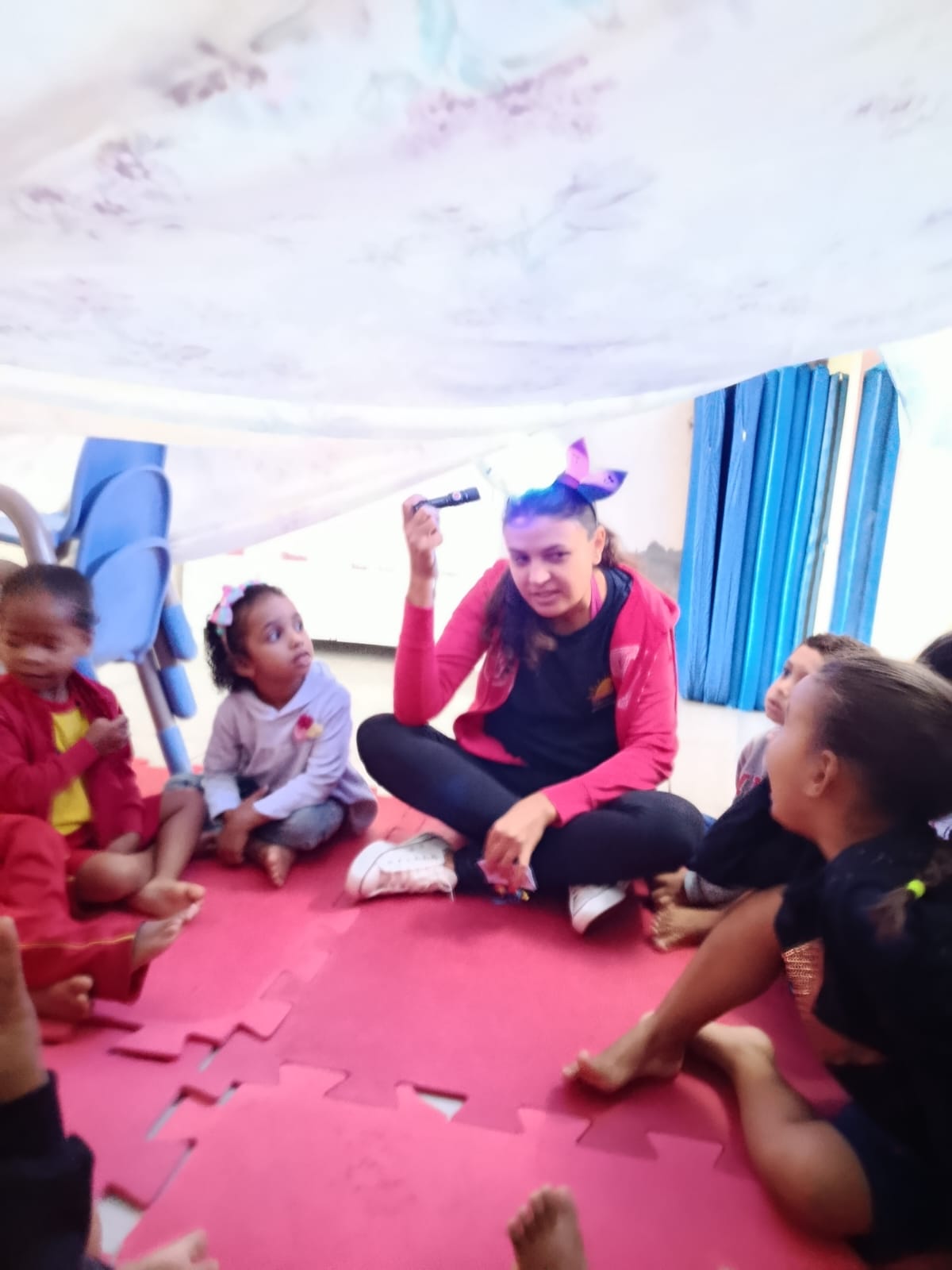 A equipe pedagógica organizou uma recepção afetiva, com atividades lúdicas, músicas, contação de histórias e decoração temática para tornar o retorno ainda mais especial. A proposta foi proporcionar às crianças um momento de reencontro leve e prazeroso, favorecendo a readaptação à rotina escolar de forma acolhedora e respeitosa.