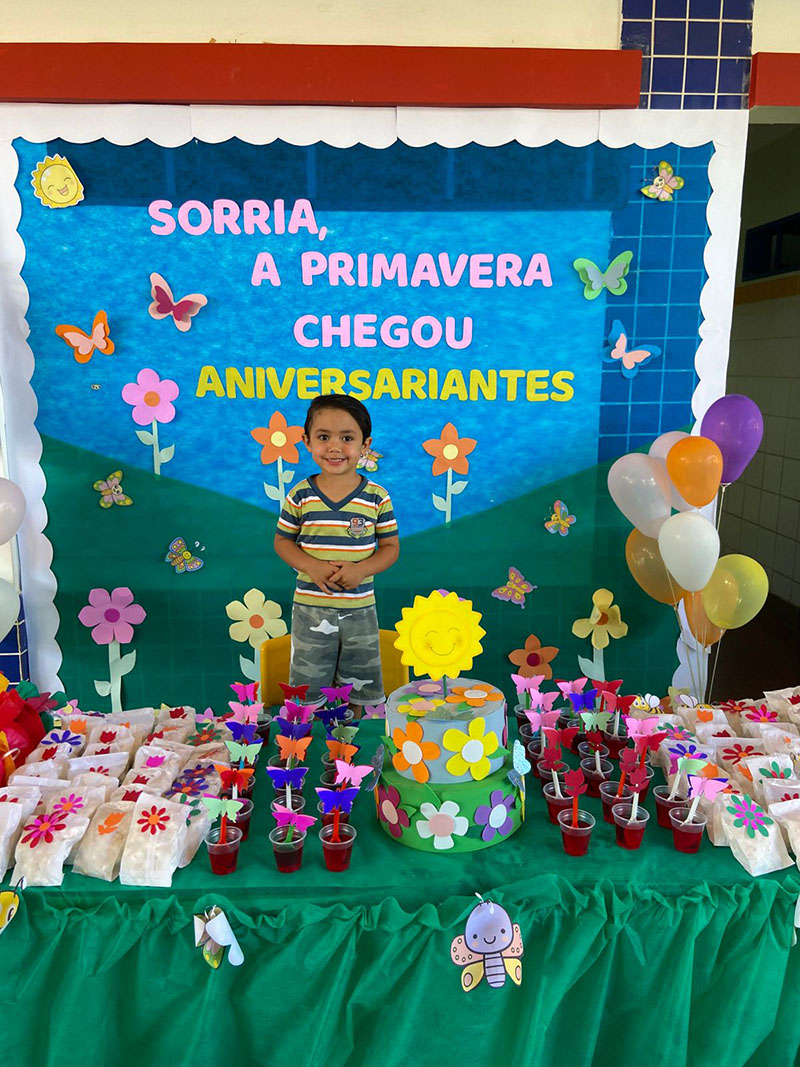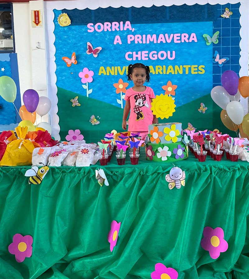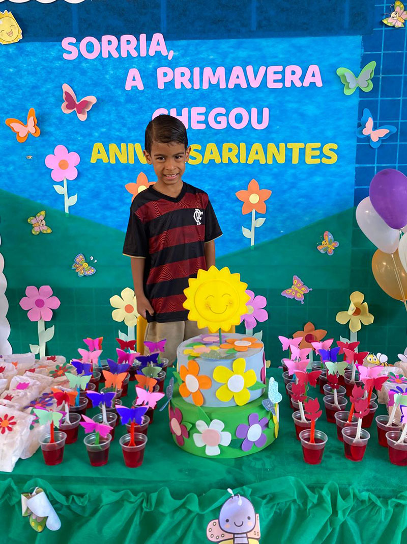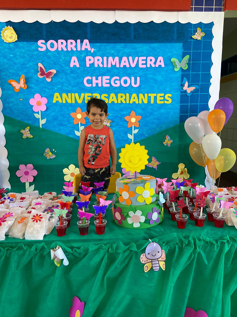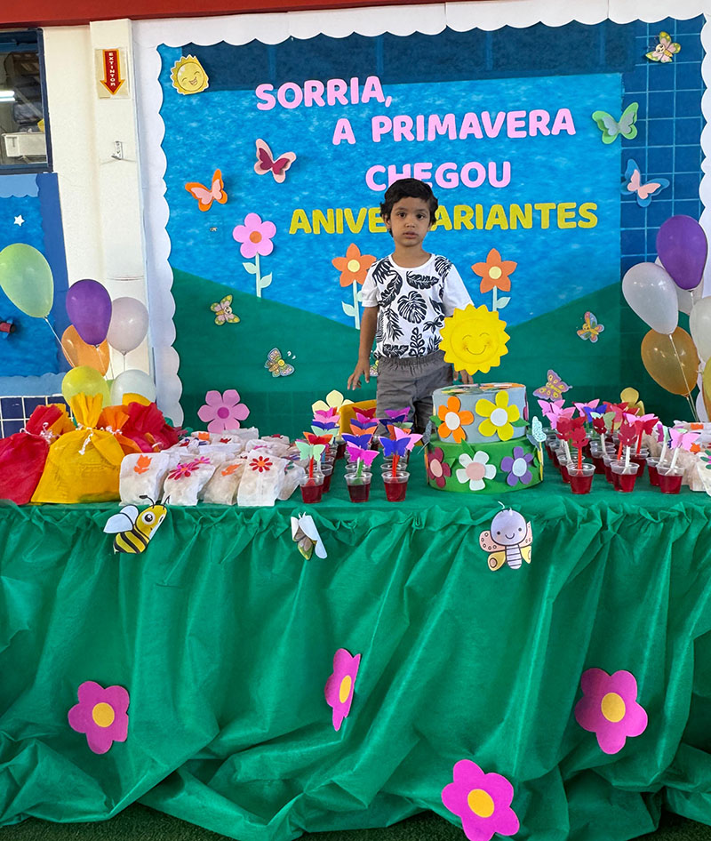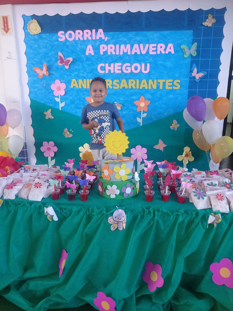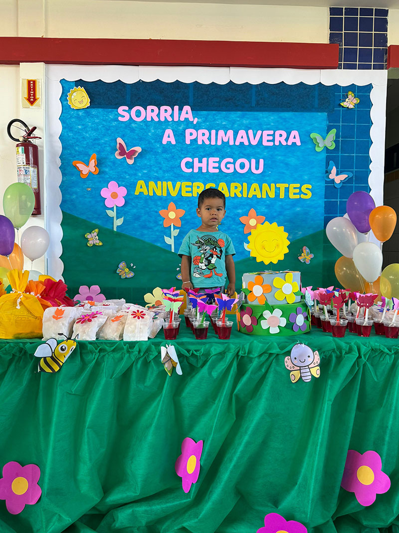 A decoração temática trouxe o colorido da nova estação para dentro da escola, com flores, borboletas e elementos que simbolizam o renascimento, a alegria e a união. Os aniversariantes foram o destaque da festa, recebendo homenagens carinhosas e desfrutando de um ambiente pensado especialmente para eles.