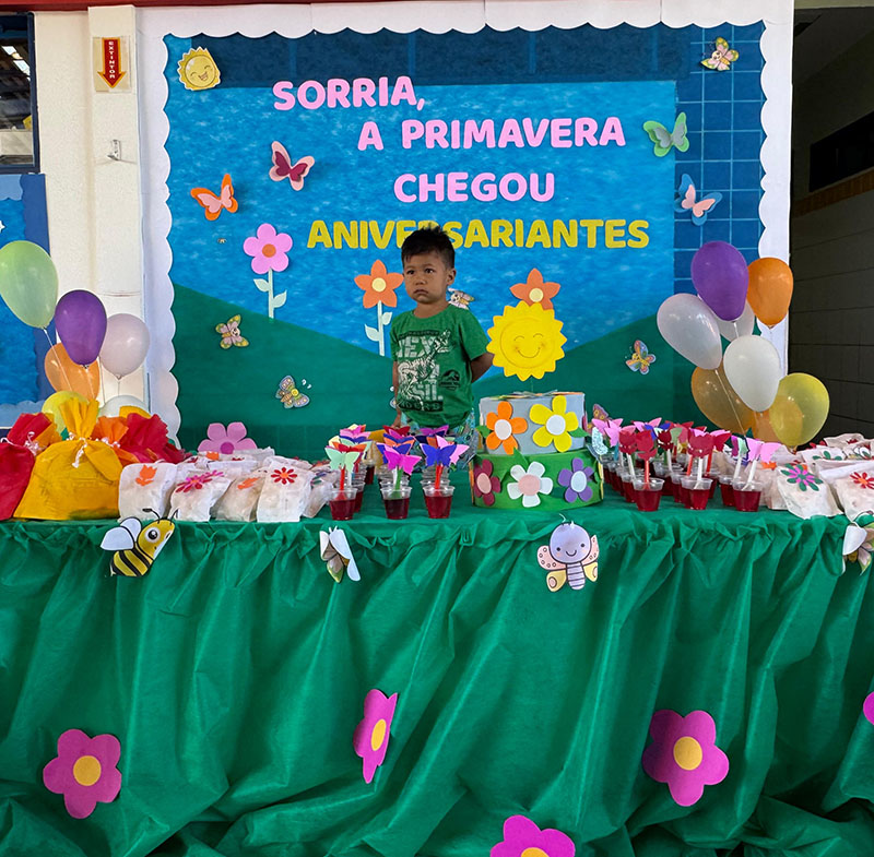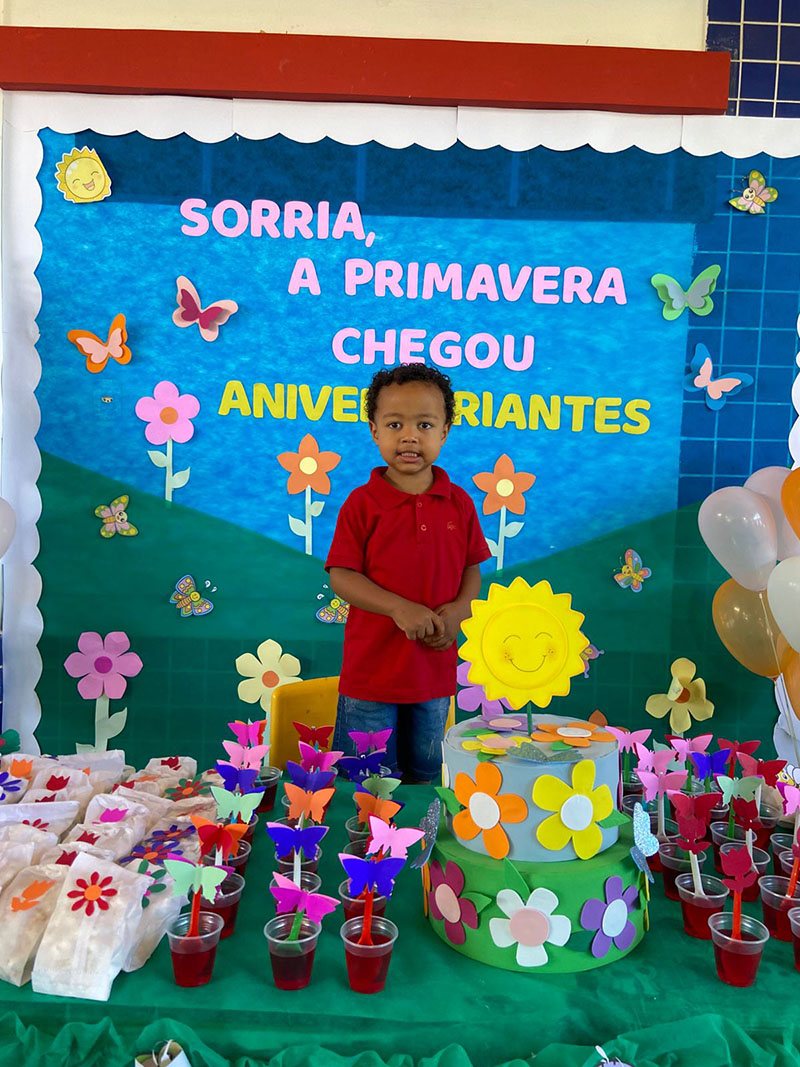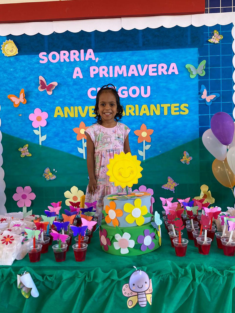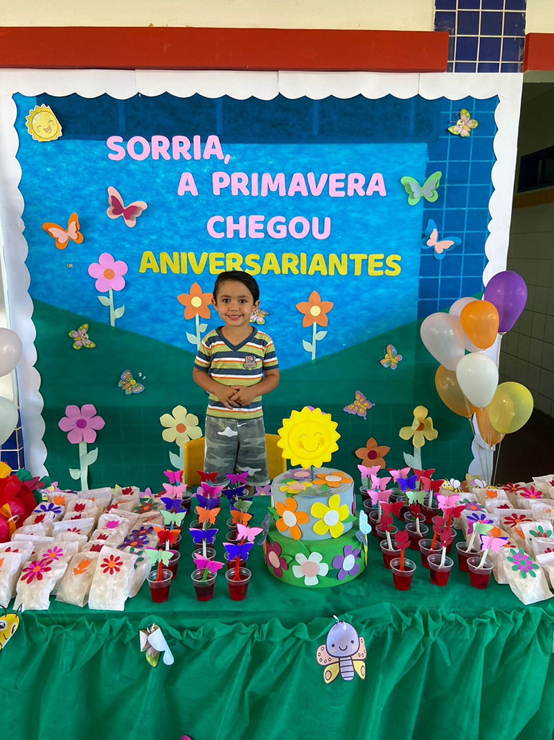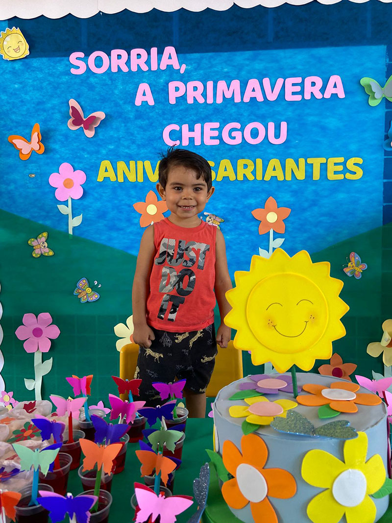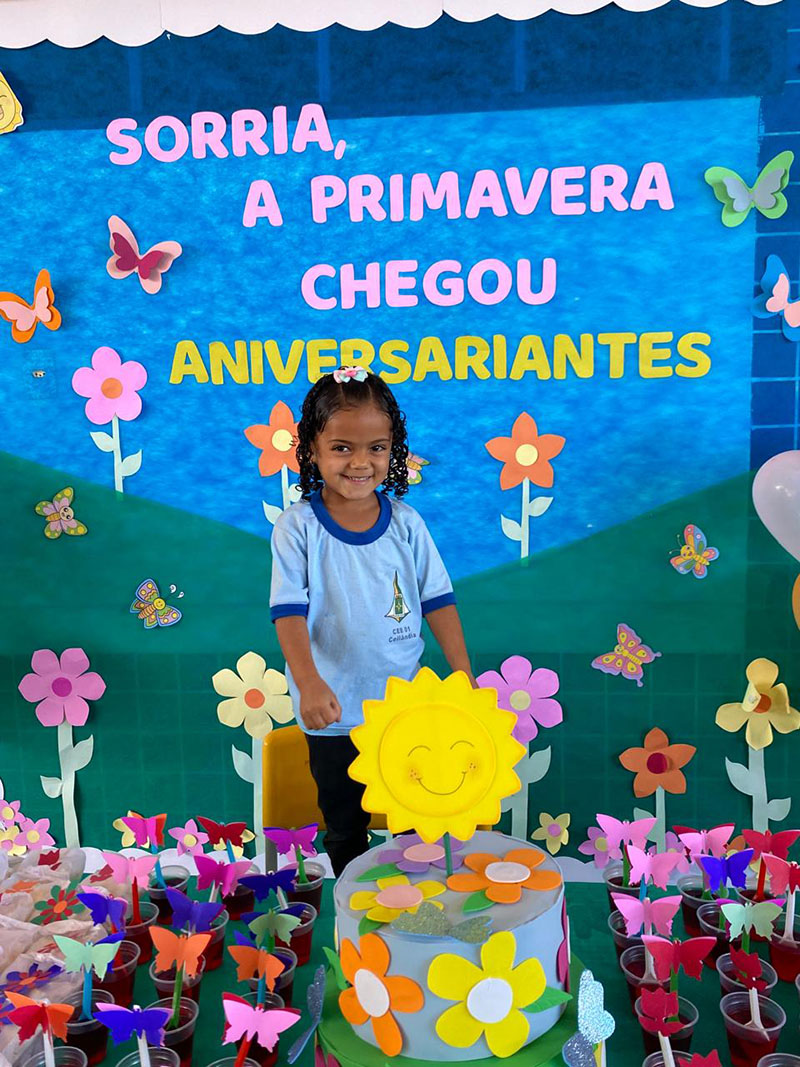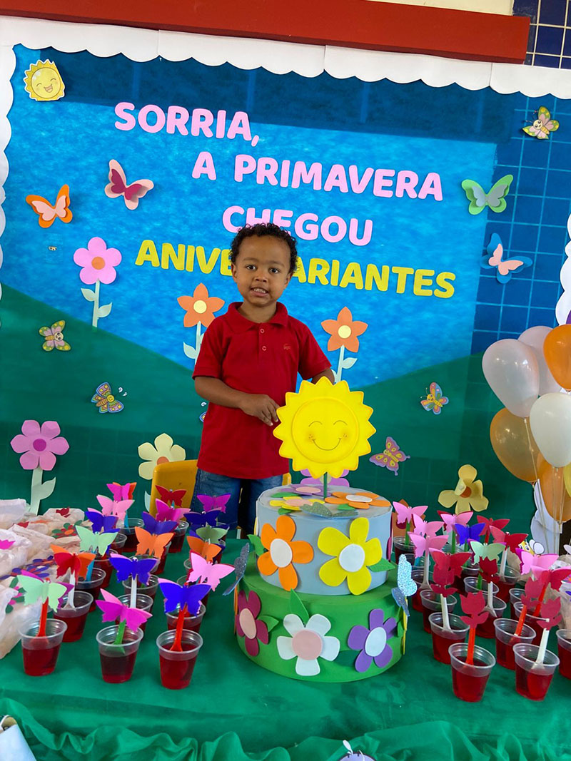 A decoração temática trouxe o colorido da nova estação para dentro da escola, com flores, borboletas e elementos que simbolizam o renascimento, a alegria e a união. Os aniversariantes foram o destaque da festa, recebendo homenagens carinhosas e desfrutando de um ambiente pensado especialmente para eles.