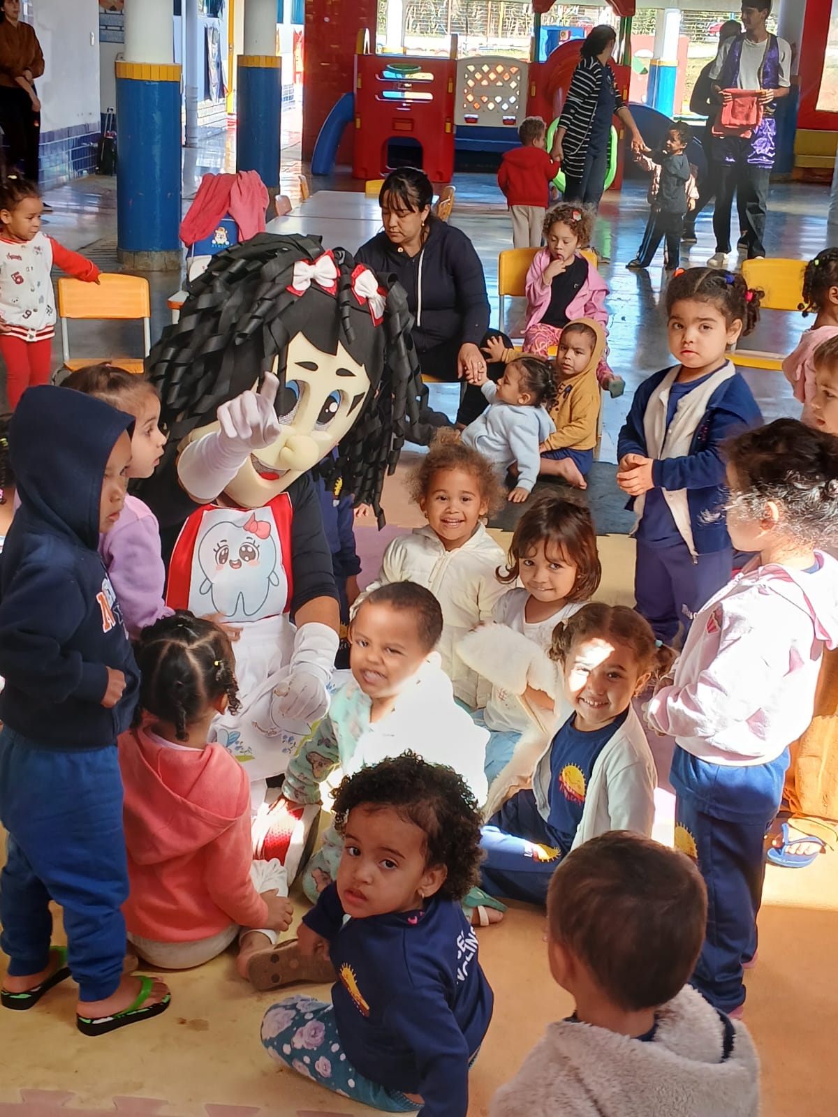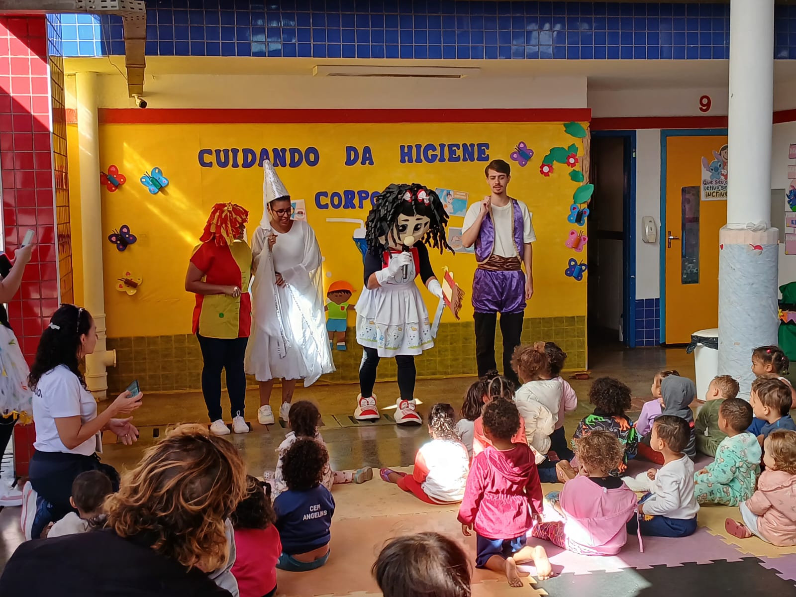Na Creche Renascer, CEPI Angelins, a higiene corporal é um aspecto crucial do cuidado infantil, envolvendo banho, higiene das mãos, troca de fraldas e estímulo a hábitos saudáveis. É importante que as crianças aprendam a importância da higiene desde cedo, através de atividades lúdicas e rotinas organizadas. Hoje (12/06), recebemos a visita da equipe da UBS 2 (Unidade Básica de Saúde) e tivemos momentos de muita alegria, diversão e aprendizado com o teatrinho e musicalização com o tema “Cuidando da Higiene Corporal”. No final, as crianças receberam um kit de higiene bucal.
