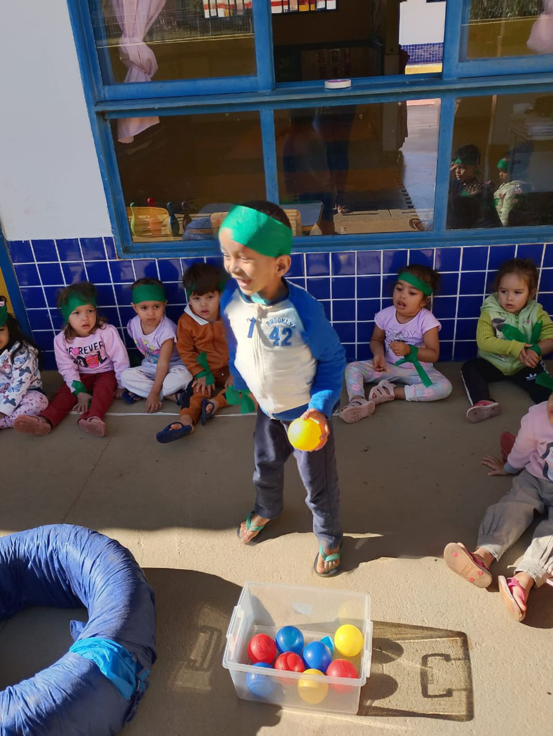 As atividades foram adaptadas à faixa etária, estimulando o movimento, a cooperação e o desenvolvimento motor dos pequenos atletas. Tivemos: