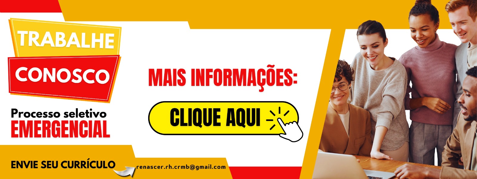 Os(as) interessados(as) devem enviar currículo atualizado e documentação exigida para o email: renascer.rh.crmb@gmail.com